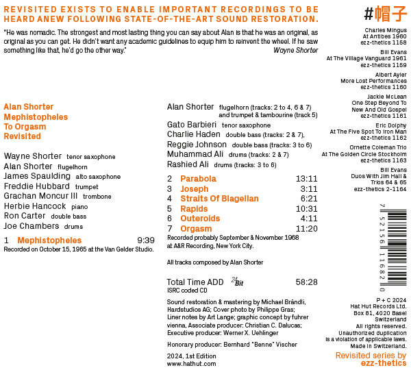 Alan Shorter flugelhorn (tracks: 2 to 4, 6 & 7) and trumpet & tambourine (track 5),