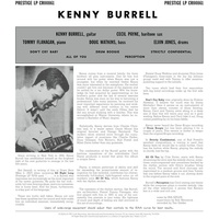 This eponymous album by Kenny Burrell was originally released on Prestige in 1957. It was his fourth album on the label as leader, his sixth album as leader in total, and features, alongside Burrell (guitar), Cecil Payne (sax), Tommy Flanagan (piano), Doug Watkins (bass), and Elvin Jones (drums).