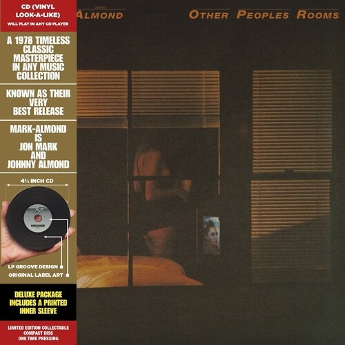 Culture Factory have reissued the long unavailable and highly underrated masterpiece Other People’s Rooms by The Mark-Almond Band. The Mark-Almond Band was formed in 1971 by British musicians John Mark (vocals, guitar) and Johnny Almond (saxes, flute), who were both members of John Mayall’s Bluesbreakers during 1969-1970. Other People’s Rooms climbed to #32 on Billboard’s album chart when it first appeared in 1978. On this magnificent Tommy Li Puma production, Mark & Almond joined forces with top American session players, such as Steve Gadd (d), Will Lee (b), John Tropea (g), and Leon Pendarvis (key). Other People’s Rooms is one of the last opus of the duet, yet one of the best, thanks also to producer Tommy Li Puma, the underrated Californian studio wizard. A subtle nostalgia goes though most of the tunes, from a new version of the classic “The City” to “Vivaldi’s Song” of Michael Franks fame (a Li Puma connection). “You Look Just Like a Girl Again”, and the title song “Other People’s Rooms” are some of the finest representatives of the last 70’s jazz-rock and pop fusion. This delectable reissue is an elegant, soft, and sensual combination of adult-oriented Pop & Jazz.
