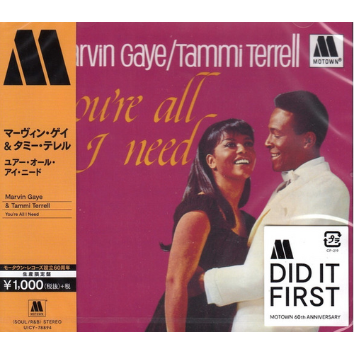 You're All I Need equals the debut of Marvin Gaye & Tammi Terrell in every way except chart position and newness. It reached number 60 on the pop charts, a good showing but 31 rungs lower than United, their debut. It includes arguably their finest recording, "You're All I Need to Get By," a testament to their singing skills and the writing/producing talents of Nickolas Ashford & Valerie Simpson -- and "Ain't Nothing Like the Real Thing" is no slouch either. The urgent "Keep on Lovin' Me Honey" is the lesser of three single releases, but a quality cut just the same, thanks in part to the twang in Tammi's voice on the uptempo pleader. Johnny Bristol and Robert Beavers' "Baby Dontcha Worry" gets an update; Johnny & Jackey first recorded the chugger on Harvey Fuqua's Tri Phi label in 1962. As on all three releases, Marvin and Tammi perform one of Tammi's solo cuts; in this case, "Come on and See Me" takes a backseat to the original. "Memory Chest," an overlooked number, is one of their most charming ballads. AllMusicGuide
