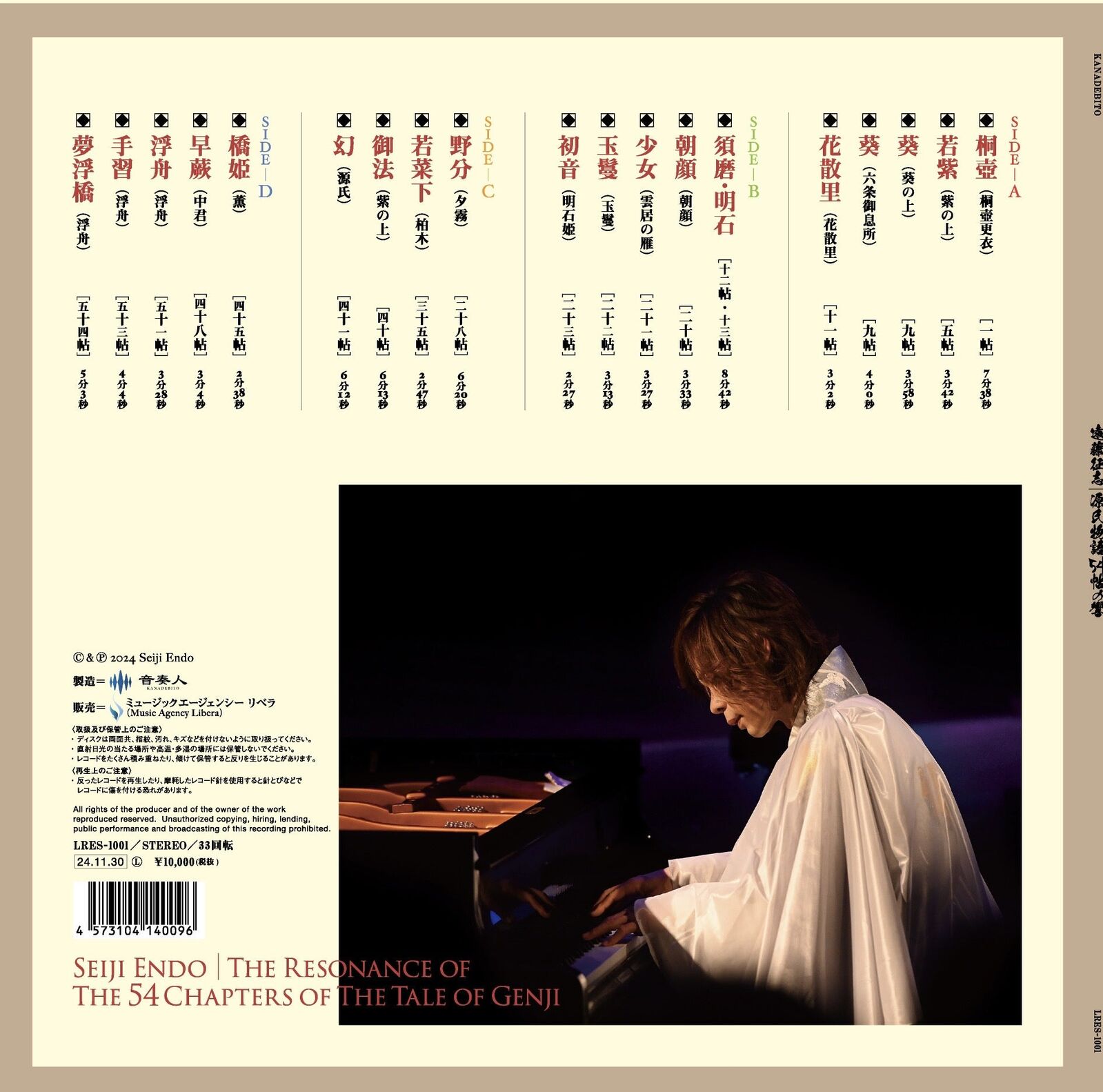 The Tale of Genji-the pinnacle of Japanese literature, spanning nearly one million characters. Determined to depict the love, hatred, prayers, and transience inherent in this story through 'sound,' Seiji Endo spent eight years composing all 54 chapters and 57 pieces. This work presents a carefully selected collection of pieces from that sonic world, compiled as a double LP. Like tracing the story itself, the music quietly, and at times intensely, stirs the heart.