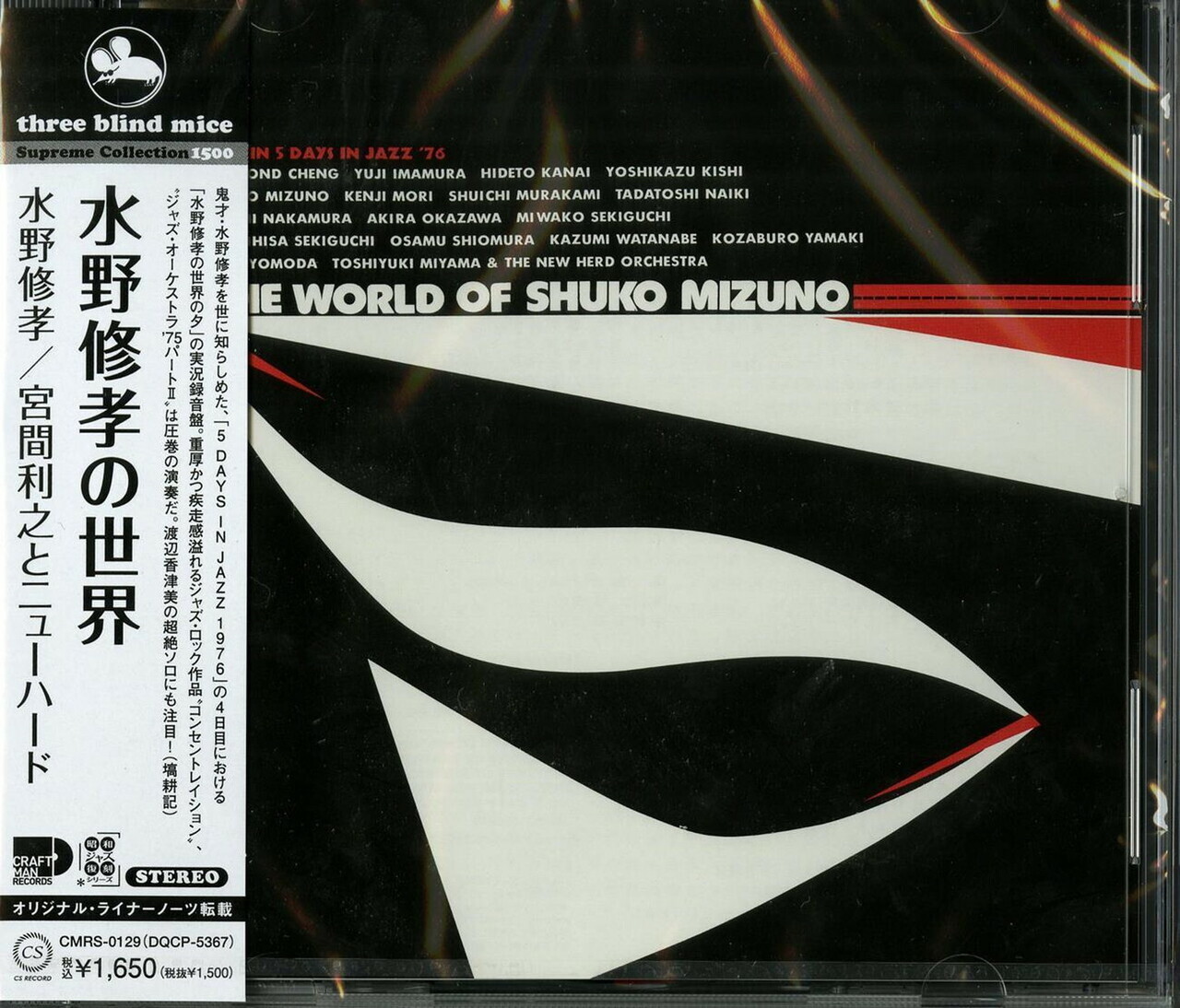 "This is a live recording of "Shuko Mizuno's World Evening" on the fourth day of "5 Days In Jazz 1976", which made the genius Shuko Mizuno known to the world. The massive, fast-paced jazz-rock piece "Concentration" and "Jazz Orchestra '75 Part II" are breathtaking performances. Katsumi Watanabe's superb solo is also noteworthy!" - Koki Hanawa