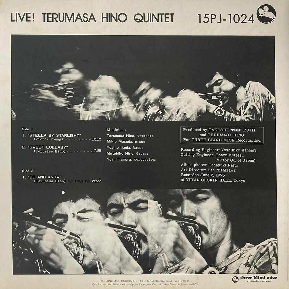 One of the boldest and most powerful 70s albums we’ve heard from trumpeter Terumasa Hino – a live date that rivals the sharp edges and strong lines of his similar album for Enja at the time! The tracks here are all quite long, and mostly show a freely exploratory Hino – one who’s far more experimental than the smoother artist that emerged later in his electric years – and a player with a tremendous range of sounds on the trumpet! Other players include Mikio Masuda on piano and Motohiko Hino on drums – and the album features 2 long tracks that go quite outside, “Stella By Starlight” and “Be & Know” – plus a more lyrical version of “Sweet Lullaby”.