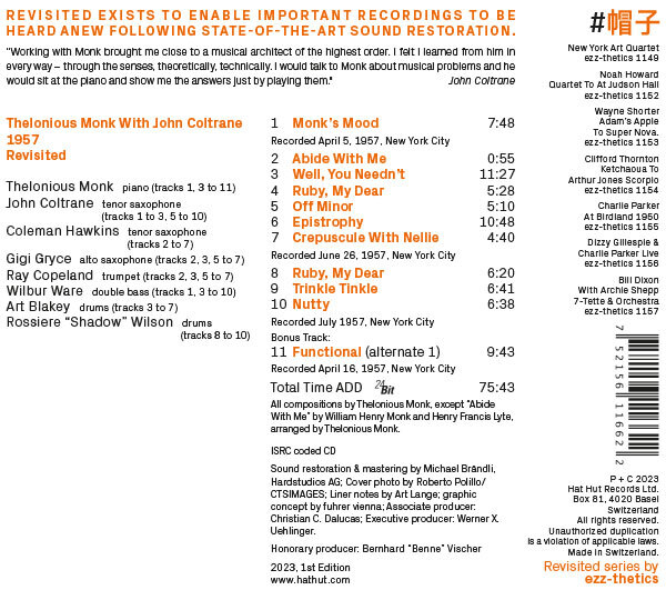 Monk’s Mood; Abide With Me; Well, You Needn’t; Ruby, My Dear; Off Minor; Epistrophy; Crepuscule With Nellie; Ruby, My Dear; Trinkle Trinkle; Nutty; Functional (alternate 1).